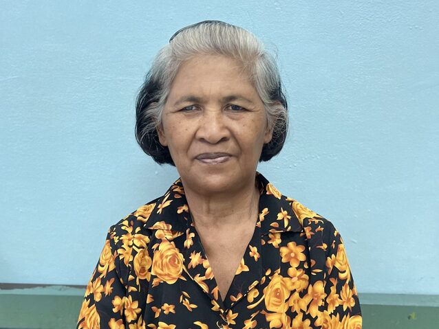Noeun is a 61-year-old retired rice farmer from Kampong Thom province, Cambodia. She is married and lives with her husband, who works as a laborer on a potato farm. In her daily routine, Noeun enjoys listening to the news and monks’ sermons on the radio. About a year ago, Noeun developed a cataract in her right eye, which caused itching, tearing, and loss of clear vision. A cataract is a clouding of the lens in the eye, making it feel like looking through a fogged-up window. Because of this, she has difficulty seeing clearly, including colors and faces, and is worried about falling when walking, so she can no longer go places on her own. She will undergo phacoemulsification cataract surgery with an intraocular lens implant in her right eye; a procedure that will remove the cataract, and then a new intraocular lens will be permanently inserted in its place. After recovery, she hopes to be able to see clearly again.